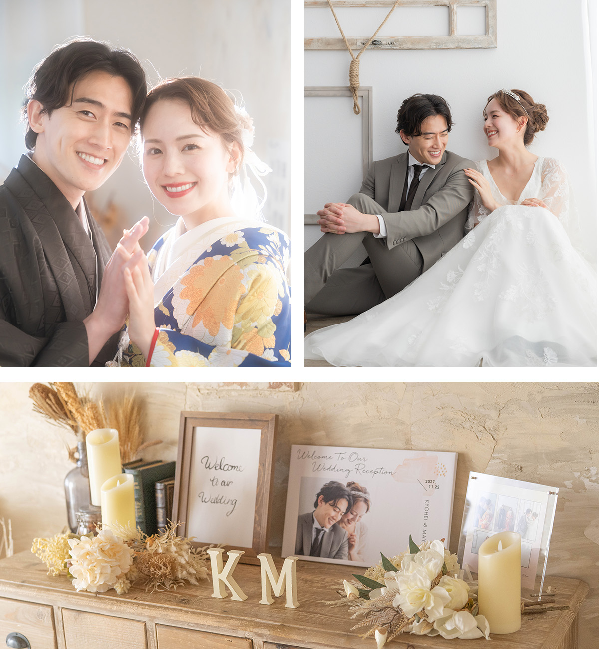 肌着や新郎様のヘアメイクなども含まれているので手ぶらで来店して、あとは撮影を楽しむだけ!