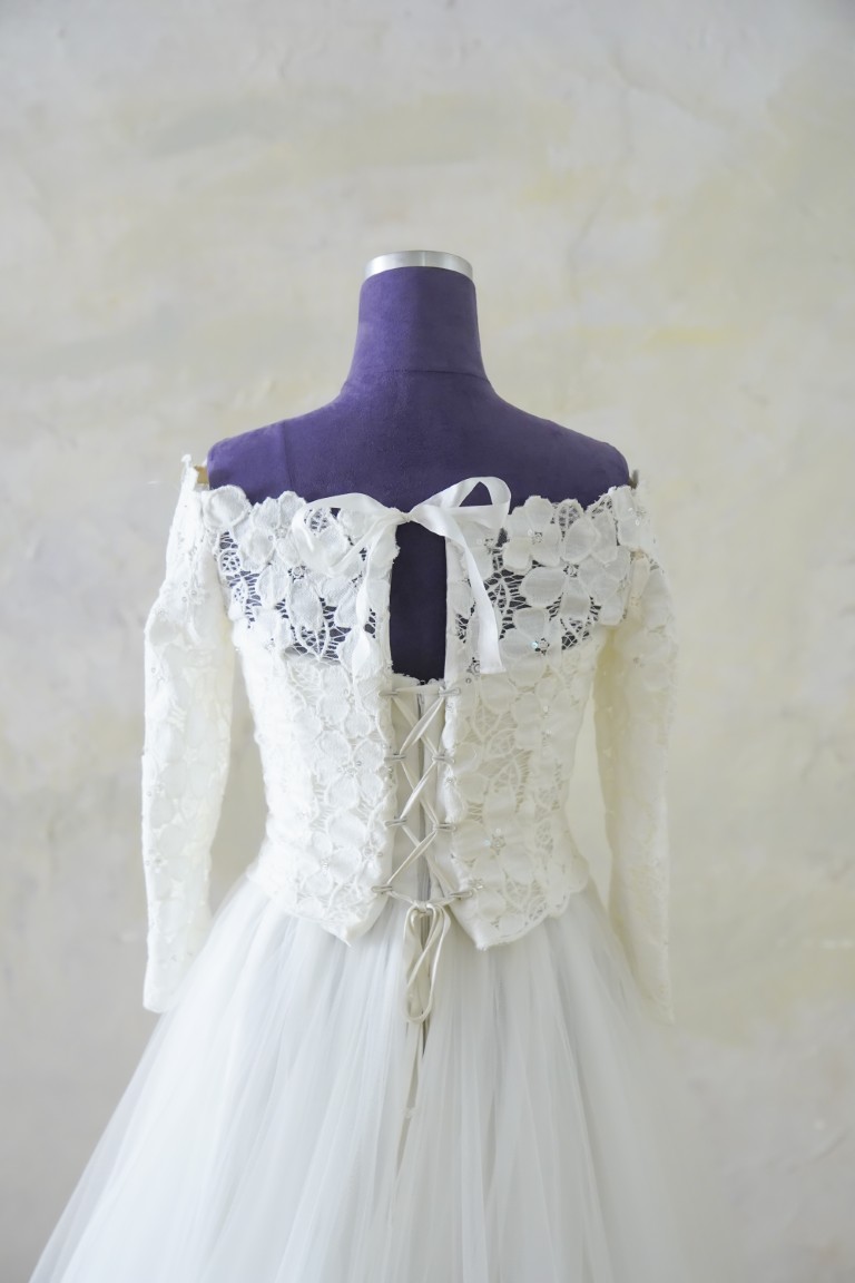 デコルテと背中部分は上品な雰囲気を演出してくれるデザイン。