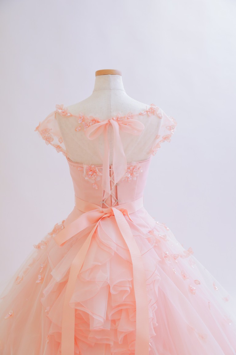 フレンチスリーブでデコルテ部分を上品に見せてくれます。