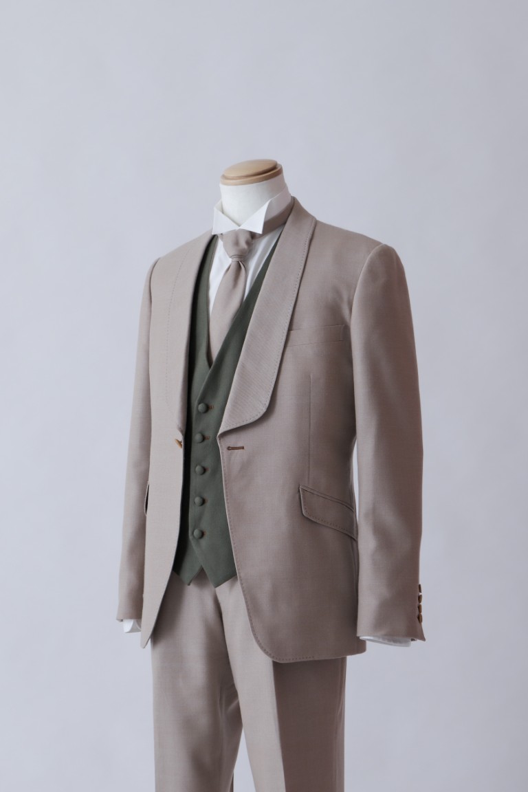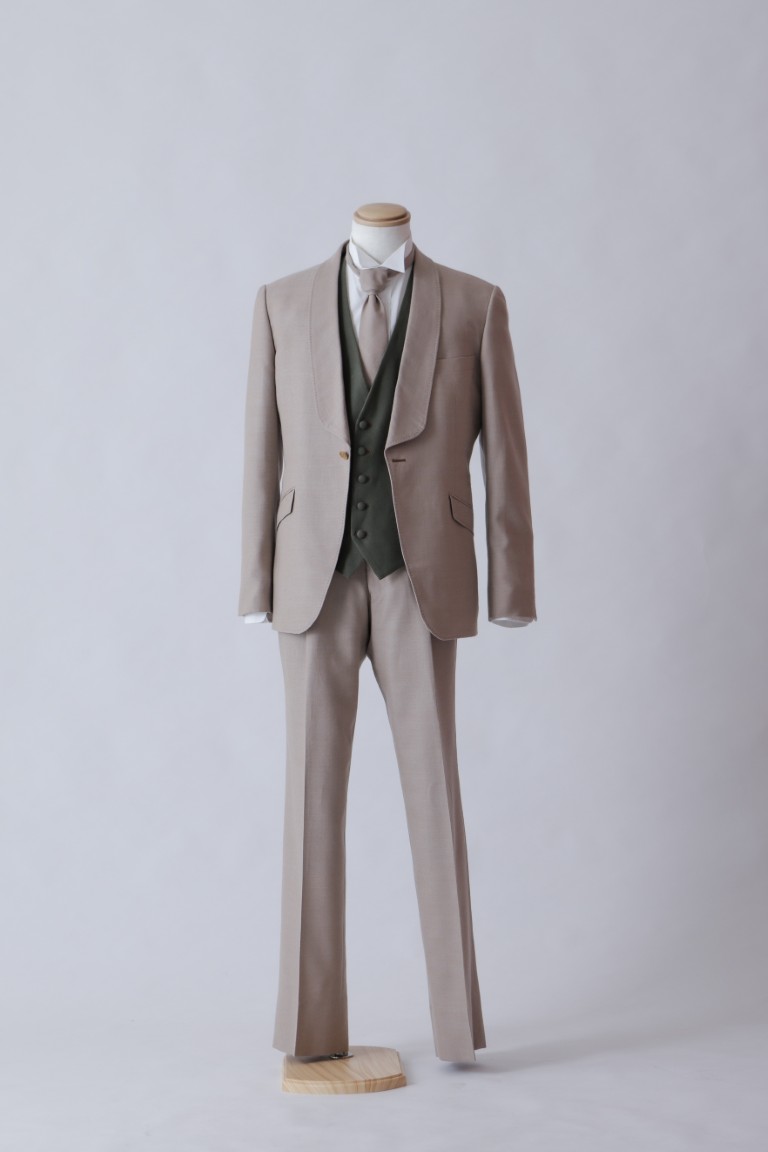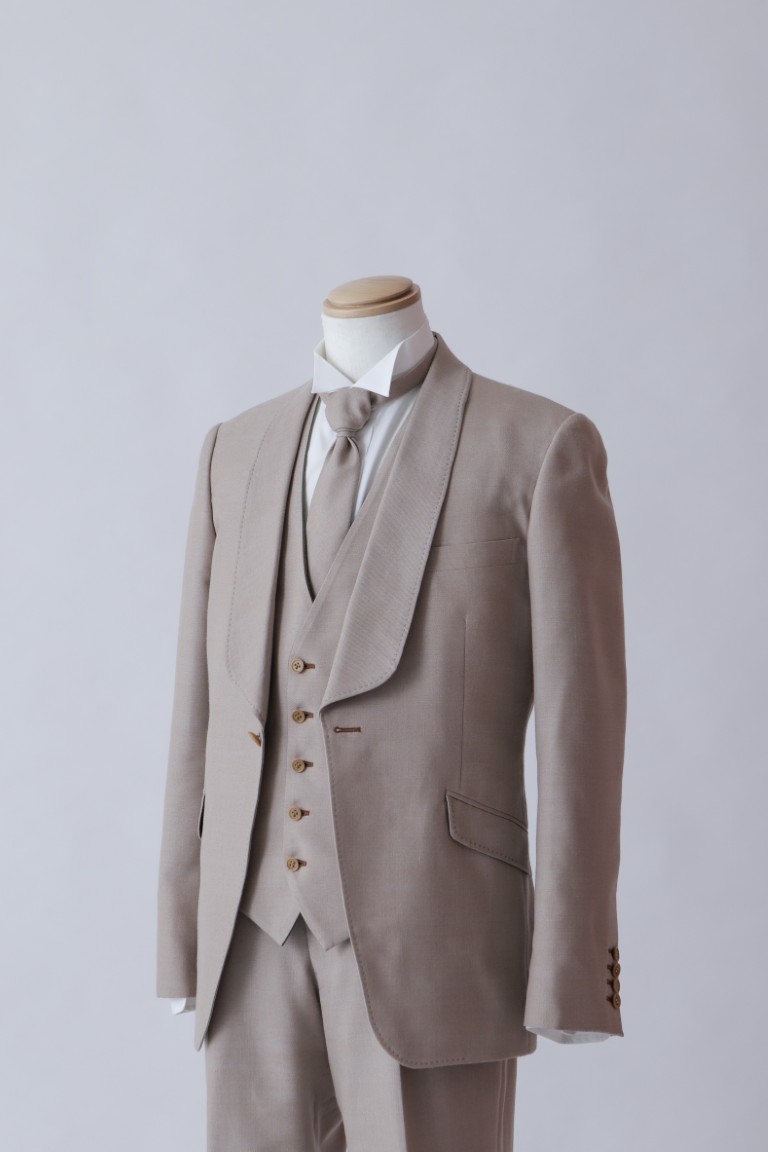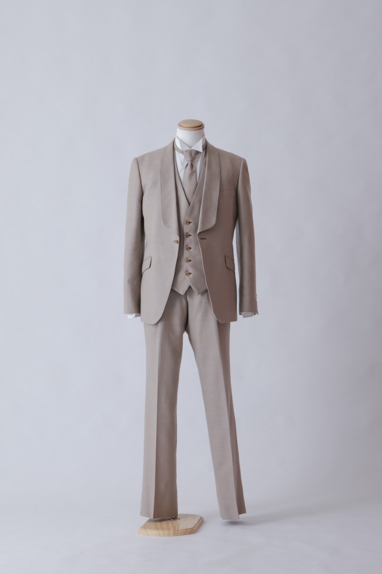 光沢のあるグレーの生地が華やかなタキシードです。