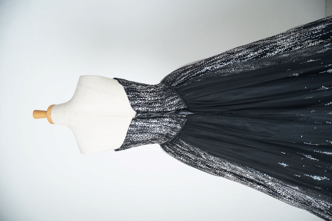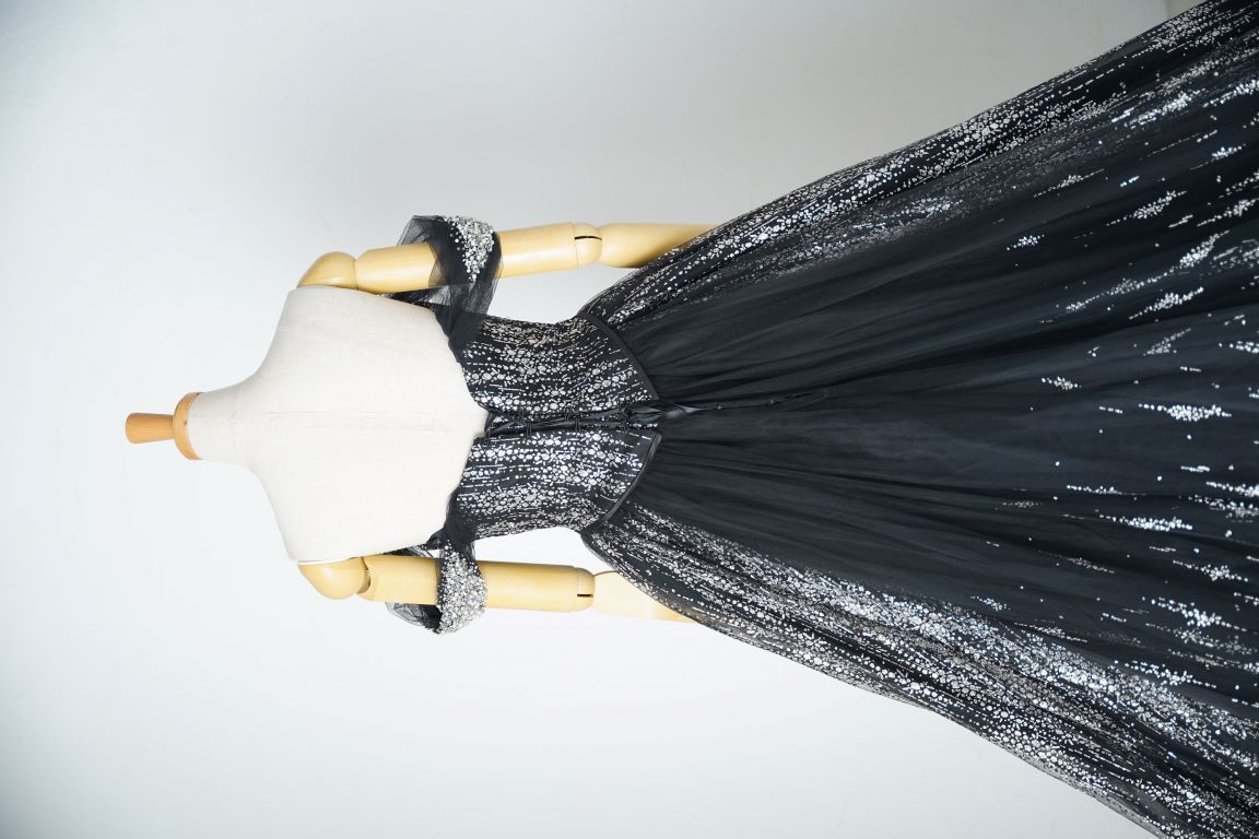 胸元、ウエストラインも綺麗に演出。