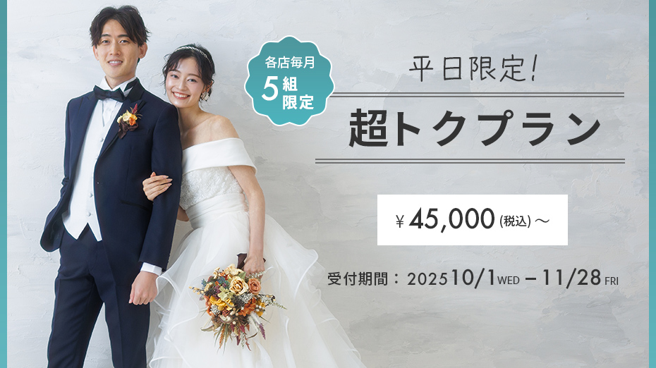 - ・新婦スタンダード衣装1着(ウエディングドレス、カラードレスなど)