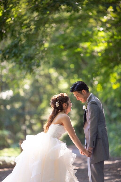 5月は、ぽかぽかとした日差しと爽やかな風が心地よく、前撮りにもぴったりの季節。 新緑に包まれて自然の...