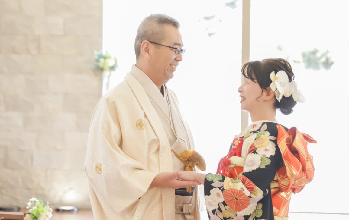 新郎:足袋、肌襦袢(肌着可)、ステテコ(ハーフパンツ可)新婦:足袋、肌襦袢、裾除け