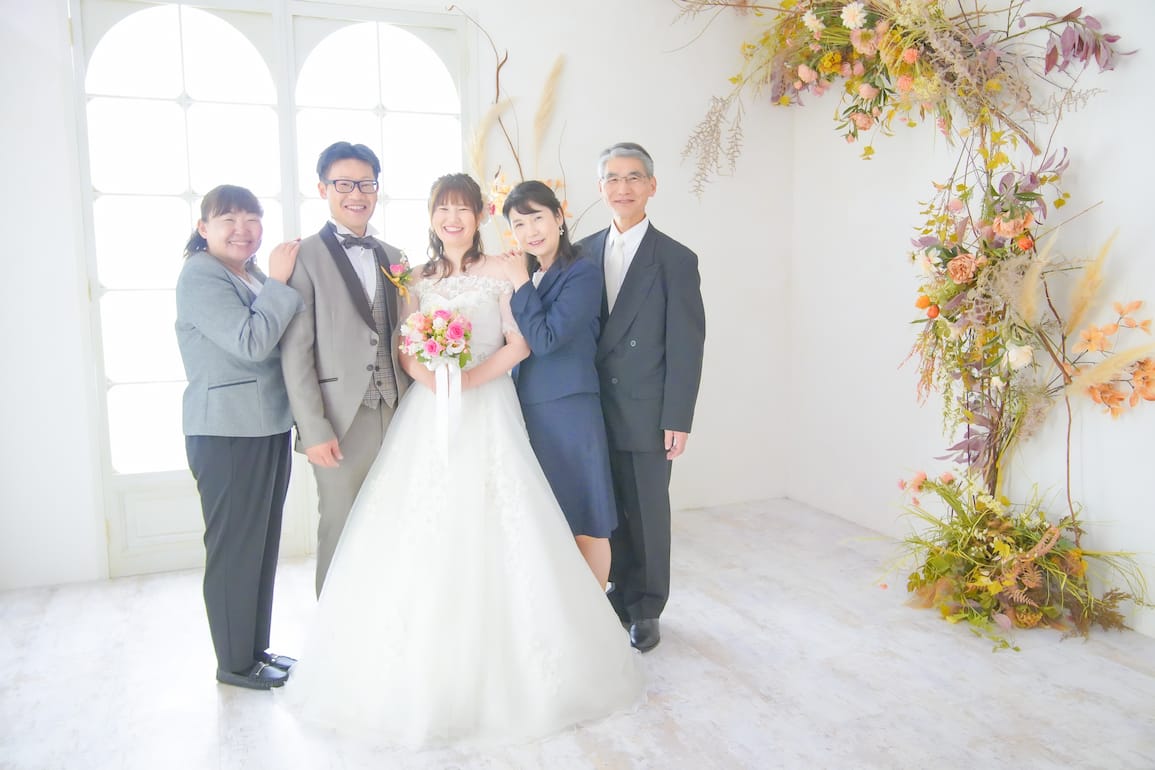 ご予約のお時間内で撮影いたしますので、組み合わせ(例:新郎新婦+両家のご両親、兄弟姉妹だけで、など)やどんなポーズで撮影したいかを決めておくとスムーズです。