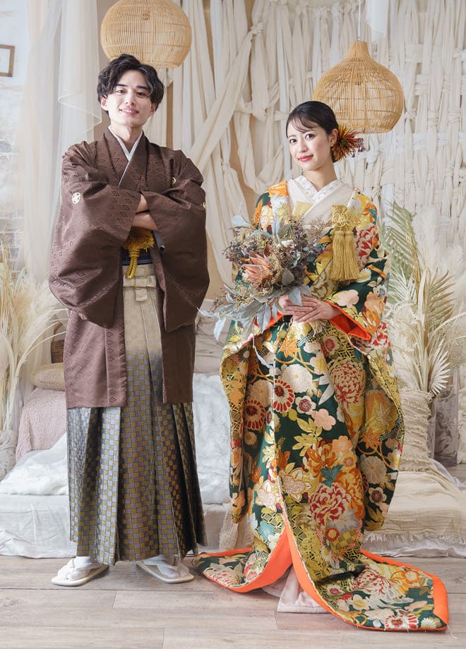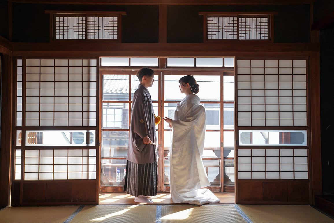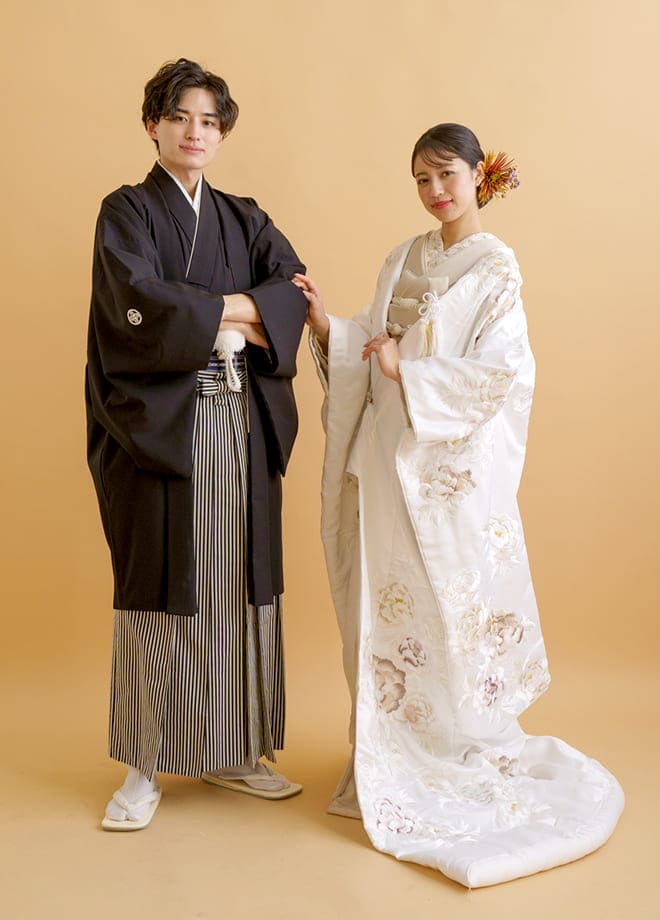 新郎:足袋、肌襦袢(肌着可)、ステテコ(ハーフパンツ可)新婦:足袋、肌襦袢、裾除け