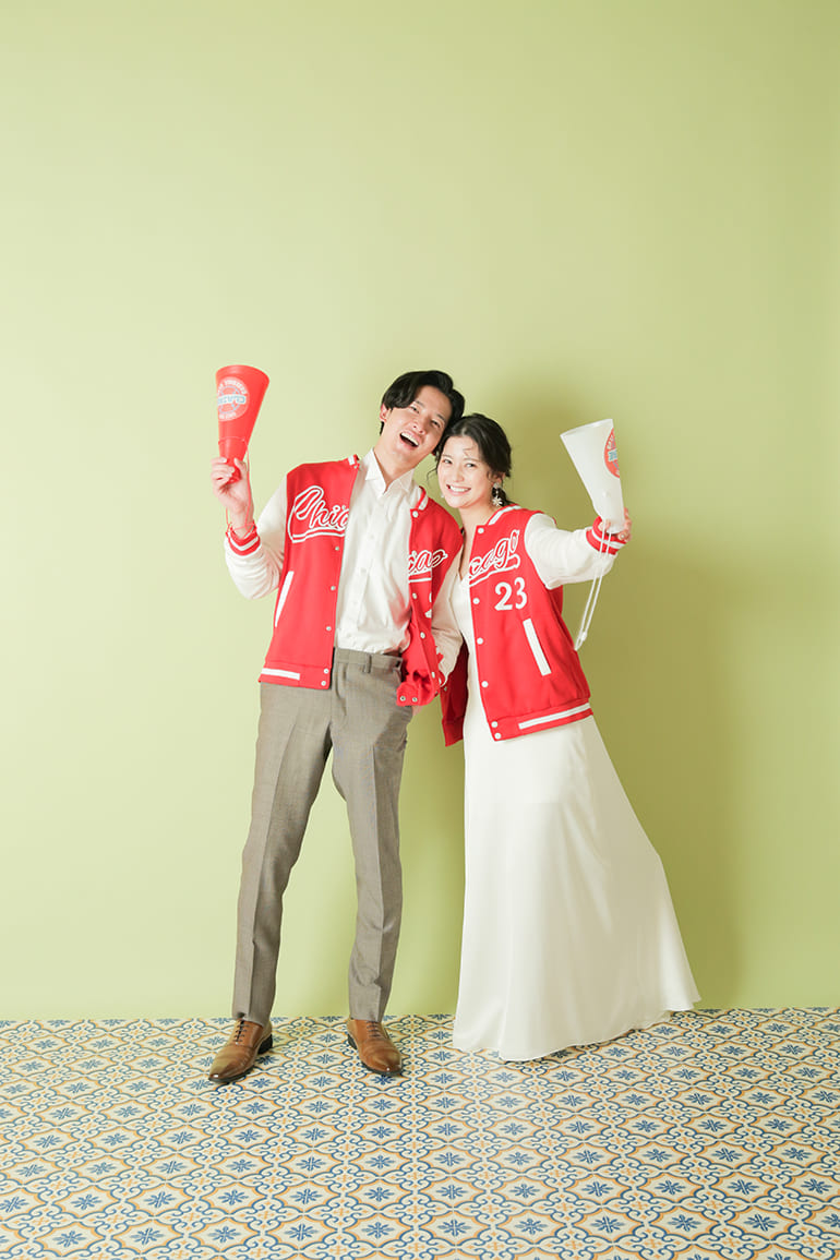 無料で持ち込んでいただけます。おふたりらしい写真のため、お衣装やグッズなどぜひどうぞ。念のため事前にご相談ください。