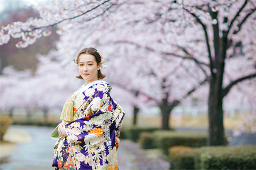 全国各地に広がる桜の名所は、色打掛や白無垢など和装にぴったり。