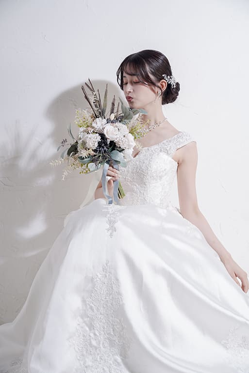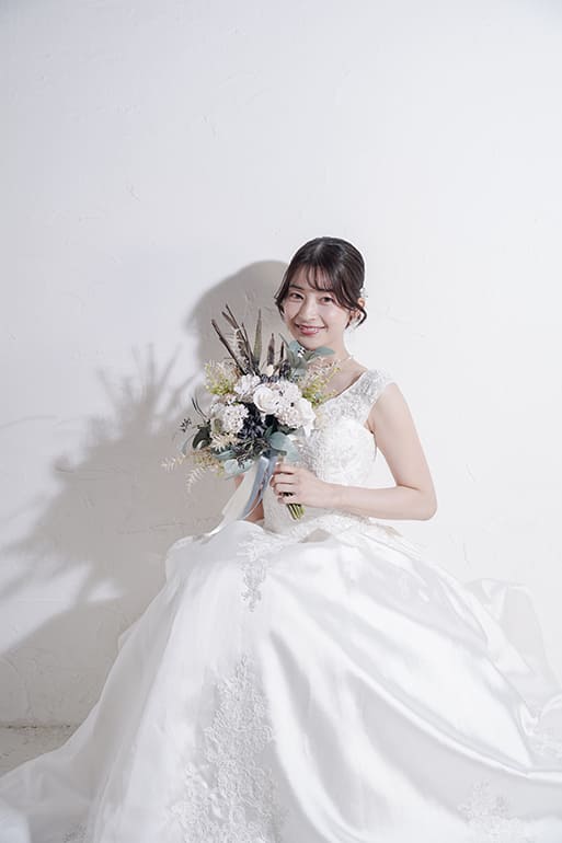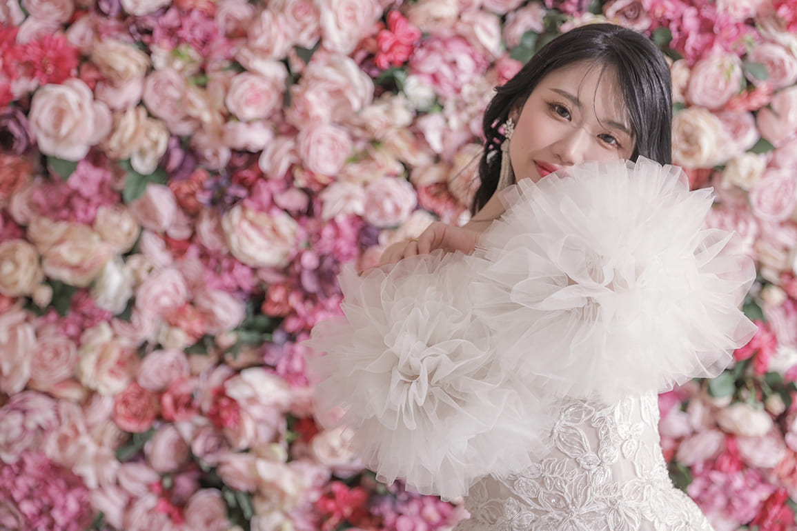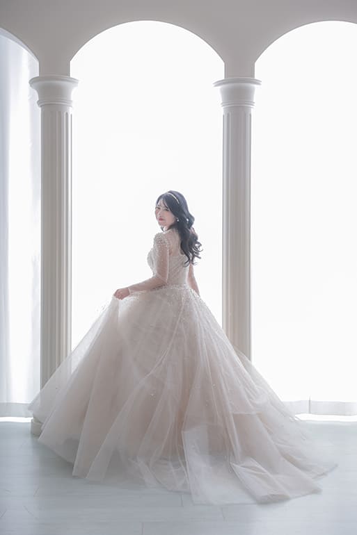 「自分のために」贈るソロウエディング撮影では、一度はウェディングドレスを着てみたい、写真が苦手なパートナーを尊重したい、人生の節目に……というあなたの思いを叶えます。未婚・既婚、年齢などにとらわれずに、今の自分を最高の形で残すことができます。