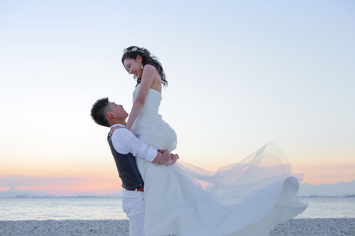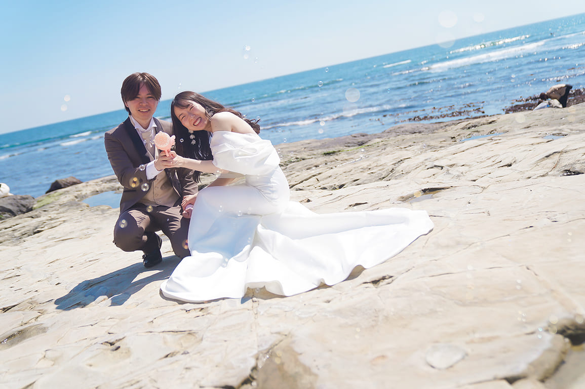 夏は年間で最も太陽の位置が高くなり、空と海が鮮やかな青色に輝くシーズンです。梅雨明け後は晴天に恵まれやすく、開放的なロケーションでの撮影に最適です。深い緑や水辺の清涼感を背景に、明るくエネルギッシュなお二人の姿を写真に残せます。
