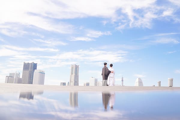 - 鮮やかな青い空とウエディングフォトや白無垢との相性は抜群